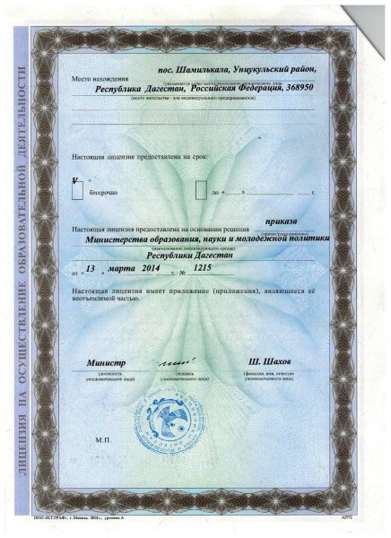 368948, Республика Дагестан, п. Шамилькала, ул. М.Дахадаева, 3