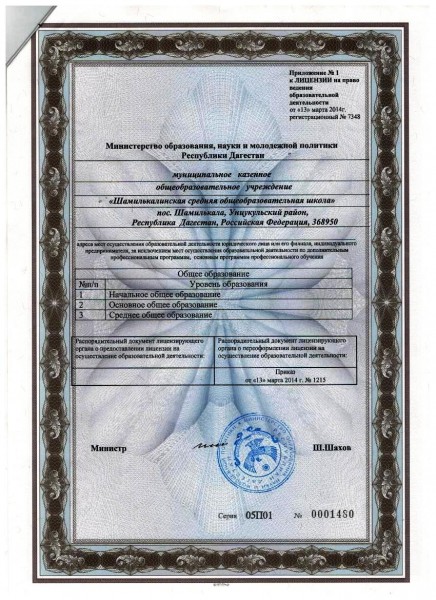 Вся образовательная деятельность по всем программам образования осуществляется на территории школы по адресу 368950, пгт Шамилькала, МО "Унцукульский район, ул Махача Дахадаева, офис №7