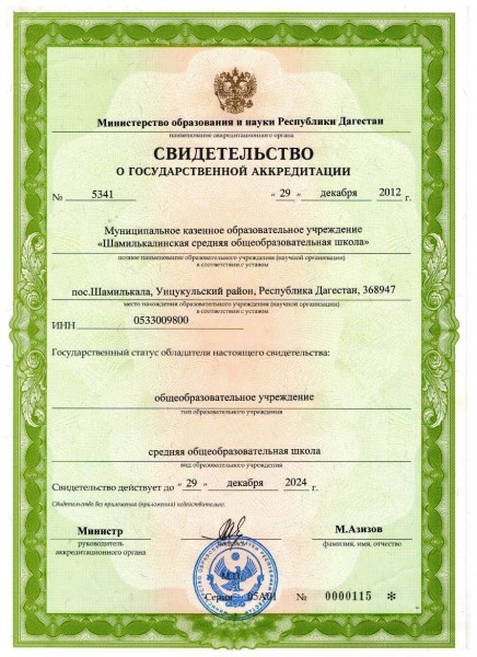 Полное наименование образовательной организации* МКОУ "ШАМИЛЬКАЛИНСКАЯ СОШ ИМЕНИ МАГОМЕДОВА К.М." УНЦУКУЛЬСКОГО МУНИЦИПАЛЬНОГО РАЙОНА
